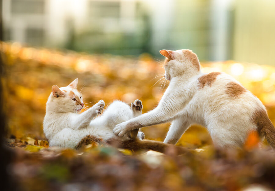 You can also introduce forms of Feline Appeasing Pheromone (FAP) into the environment. This can be done with diffusers placed in the most occupied and disputed territory, giving each a collar, and sprays on furniture and bedding they share.