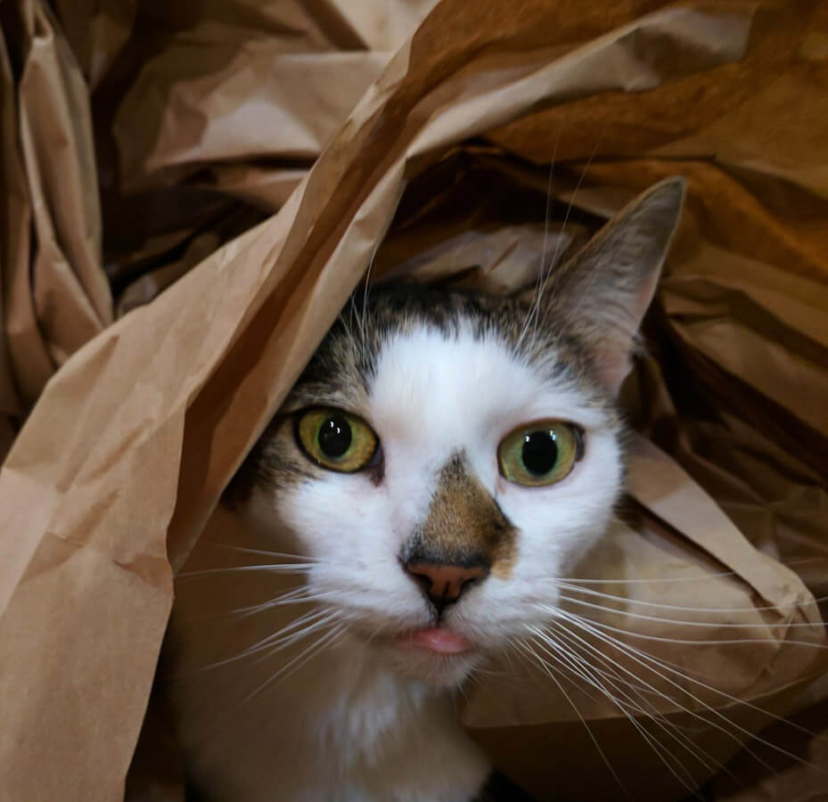 LB: It’s true. If you’re not meeting your cat’s needs through some catification, you may find that your cat will start using what’s around to get his needs met. Sometimes that’s perfectly harmless—I noticed that my cats love to hop around in brown paper shopping bags, so sometimes I leave bags in the guest room, so they can hop and play around in them. But if your cats don’t have somewhere to scratch or climb or run, they’re going to see what pieces of your furniture might work for that purpose.
